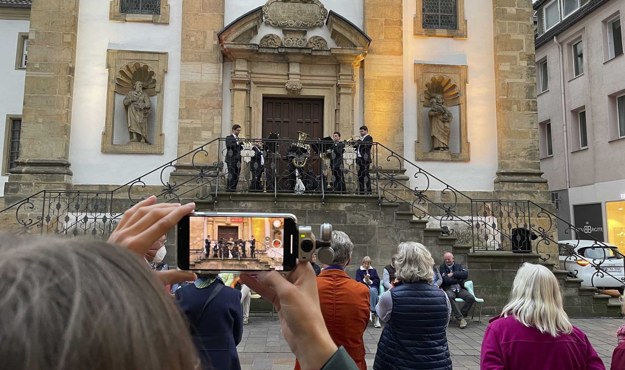 Samstags erhellten Kirchenkonzerte die Paderborner Innenstadt zur „Langen Nacht der Kirchen“ in Zusammenarbeit mit der Werbegemeinschaft und dem City Management Paderborn sowie unterstützt von Bad Driburger Mineralbrunnen und Kultursekretariat NRW. Bei traumhaften Spätsommerwetter wandelten zahlreiche Musikbegeisterte von Konzert zu Konzert an und in verschiedenen Kirchen der Stadt. So spielte Organist Sebastian Freitag in der Herz-Jesu-Kirche und eine Abordnung des Paderborner Domchores sang vor und in der Gaukirche am Marktplatz. Junge Gläubige luden mit dem Format „Nightfever“ zu Gebet und Gesang in die Marktkirche. Die Dombläser eröffneten die Wandelkonzerte mitten in der Fußgängerzone am Aufgang zur Franziskanerkirche und beschlossen den musikalischen Rundgang auch vorm Hohen Dom, in dem das Leipziger Vokalensemble Sjaella mit dem Abschlusskonzert des Abends wahrhaft bezauberte.